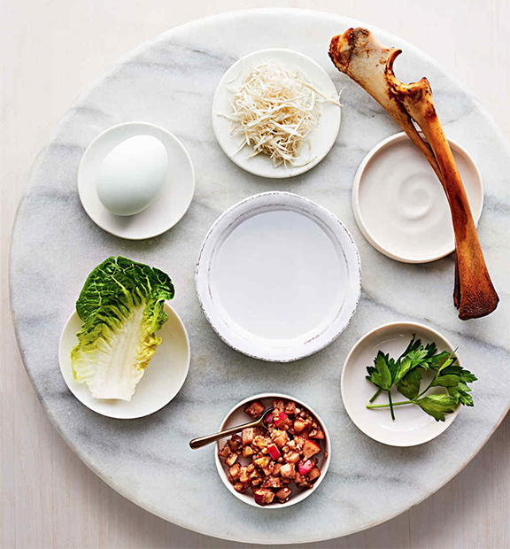 shank bone (zeroa), egg (beitzah), horseradish (maror), parsley (karpas) and haroset (plate not included)